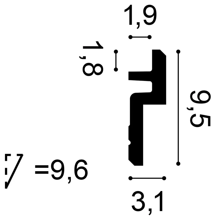 C394 Lišta pre nepriame osvetlenie ORAC DECOR d 200 x š 3,1 x v 9,5 cm